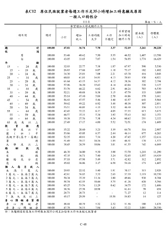 表C12 原住民族就業者每週工作不足35小時增加工時意願及原因