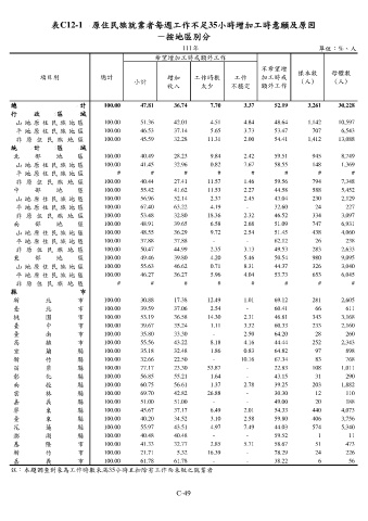 表C12-1 原住民族就業者每週工作不足35小時增加工時意願及原因
