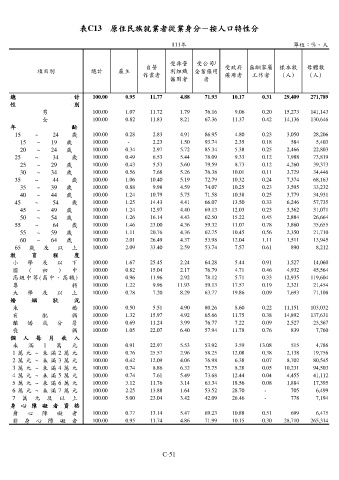 表C13 原住民族就業者從業身分-按人口特性分