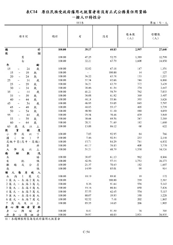 表C14 原住民族受政府僱用之就業者有沒有正式公務員任用資格