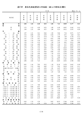 表C15 原住民族就業者工作地區-按人口特性分(續1)