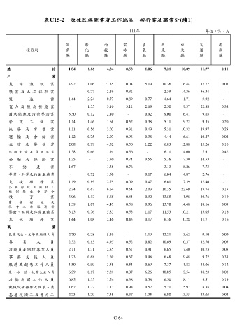 表C15-2 原住民族就業者工作地區-按行業及職業分(續1)