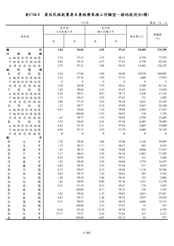 表C16-1 原住民族就業者主要經濟來源工作類型-按地區別分(續)