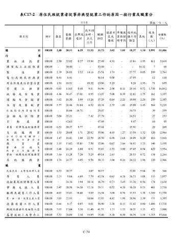 表C17-2 原住民族就業者從事非典型就業工作的原因-按行業及職業分
