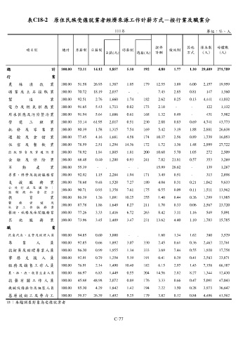 表C18-2 原住民族受僱就業者經濟來源工作計薪方式-按行業及職業分