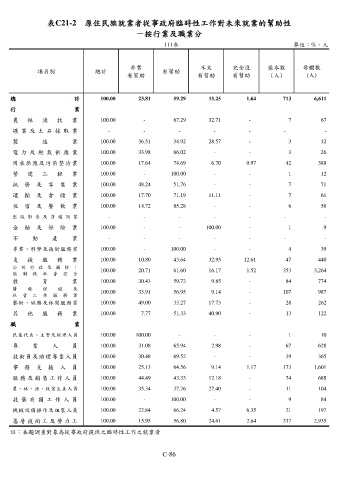 表C21-2 原住民族就業者從事政府臨時性工作對未來就業的幫助性