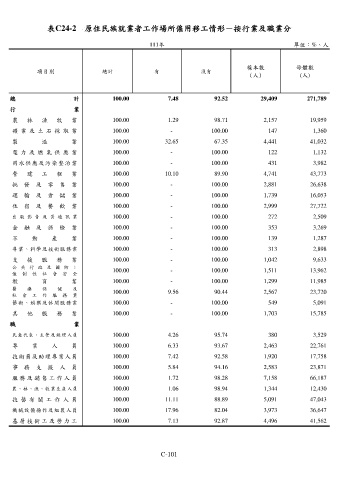 表C24-2 原住民族就業者工作場所僱用移工情形-按行業及職業分