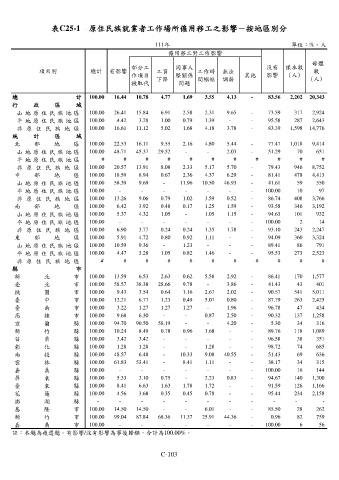 表C25-1 原住民族就業者工作場所僱用移工之影響-按地區別分