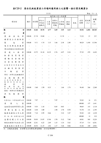 表C25-2 原住民族就業者工作場所僱用移工之影響-按行業及職業分