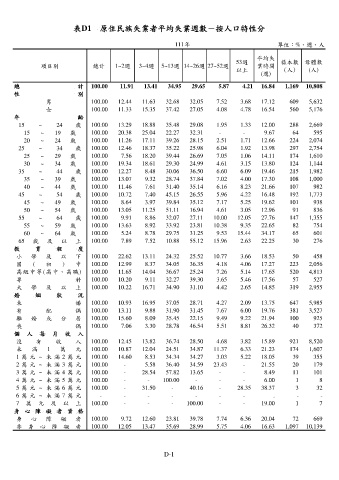 表D1 原住民族失業者平均失業週數-按人口特性分