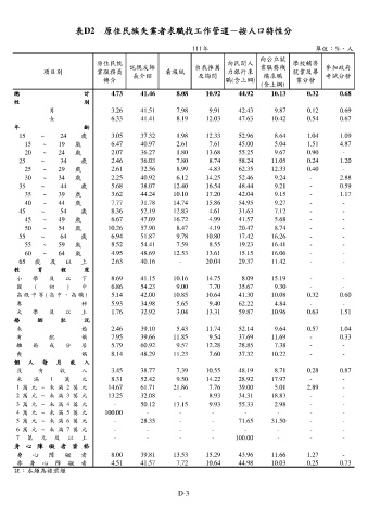 表D2 原住民族失業者求職找工作管道-按人口特性分