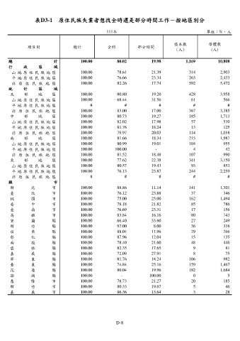 表D3-1 原住民族失業者想找全時還是部分時間工作-按地區別分