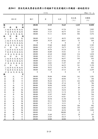 表D4-1 原住民族失業者在找尋工作過程中有沒有遇到工作機會-按地區別分