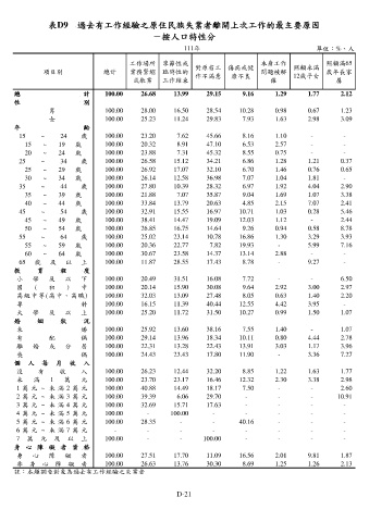 表D9 過去有工作經驗之原住民族失業者離開上次工作的最主要原因