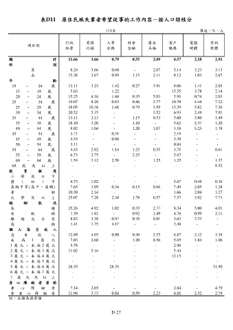 表D11 原住民族失業者希望從事的工作內容-按人口特性分
