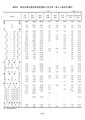 表D11 原住民族失業者希望從事的工作內容-按人口特性分(續1)