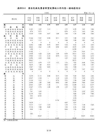 表D11-1 原住民族失業者希望從事的工作內容-按地區別分