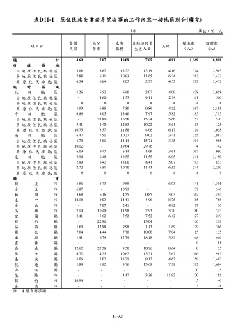 表D11-1 原住民族失業者希望從事的工作內容-按地區別分(續完)
