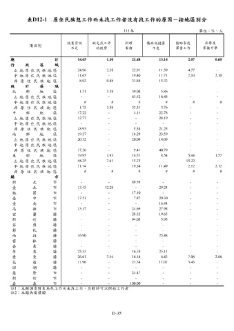 表D12-1 原住民族想工作而未找工作者沒有找工作的原因-按地區別分