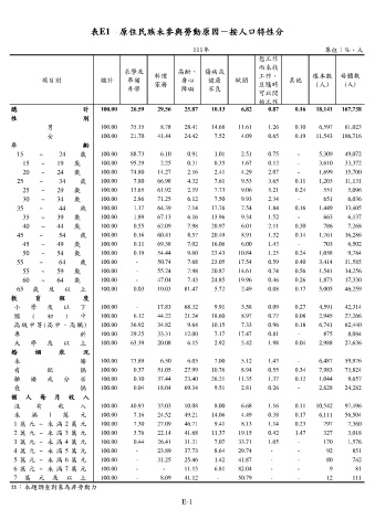 表E1 原住民族未參與勞動原因-按人口特性分