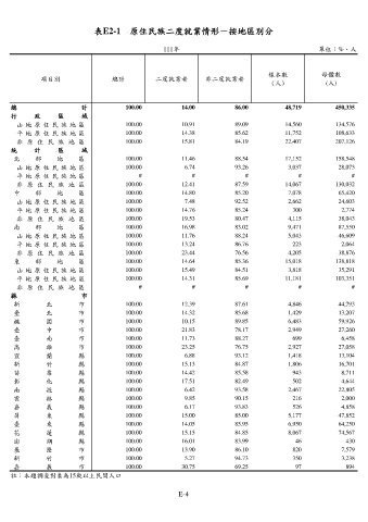 表E2-1 原住民族二度就業情形-按地區別分