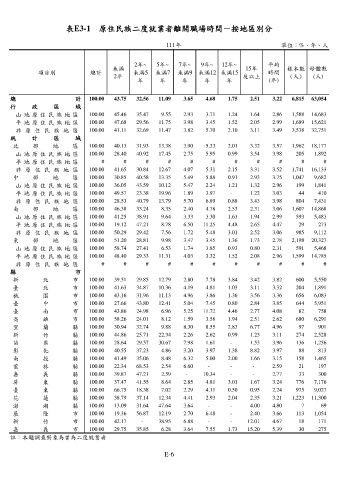 表E3-1 原住民族二度就業者離開職場時間-按地區別分