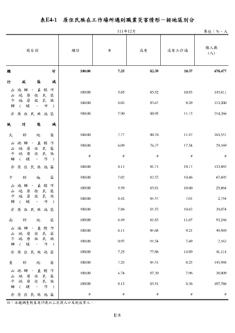 表E4-1 原住民族在工作場所遇到職業災害情形-按地區別分