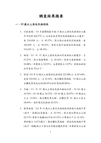 1. 行政區域:111 年臺灣地區年滿 15 歲以上原住民族現住人數