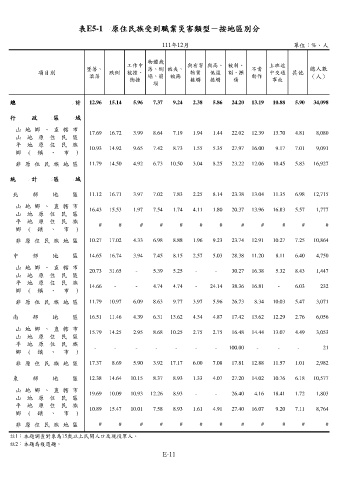 表E5-1 原住民族受到職業災害類型-按地區別分