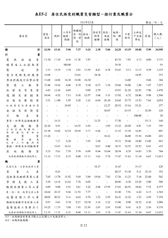 表E5-2 原住民族受到職業災害類型-按行業及職業分