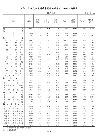 表E6 原住民族遇到職業災害的賠償者-按人口特性分