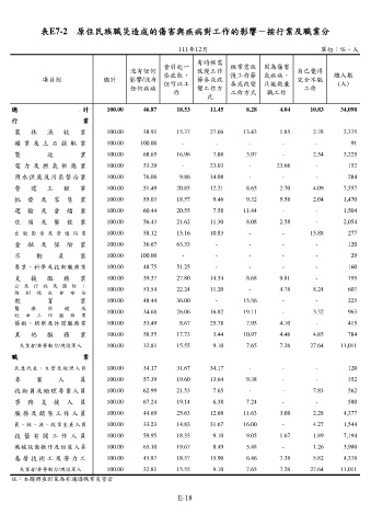 表E7-2 原住民族職災造成的傷害與疾病對工作的影響-按行業及職業分