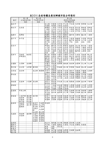 表2-2-1 各副母體各層別鄉鎮市區分布情形