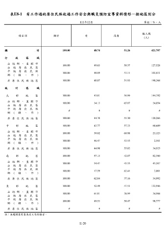 表E8-1 有工作過的原住民族收過工作安全與職災預防宣導資料情形-按地區別分