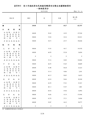 表E10-1 有工作過的原住民族接受職業安全衛生相關課程情形