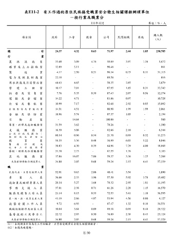 表E11-2 有工作過的原住民族接受職業安全衛生相關課程辦理單位