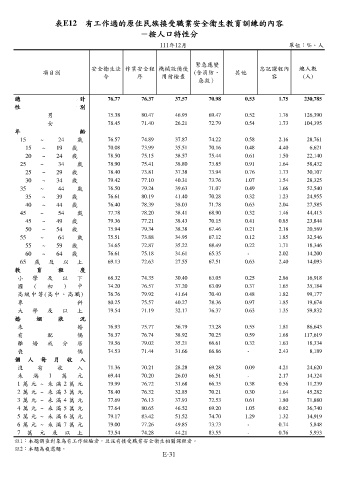 表E12 有工作過的原住民族接受職業安全衛生教育訓練的內容