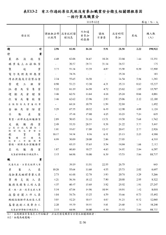 表E13-2 有工作過的原住民族沒有參加職業安全衛生相關課程原因