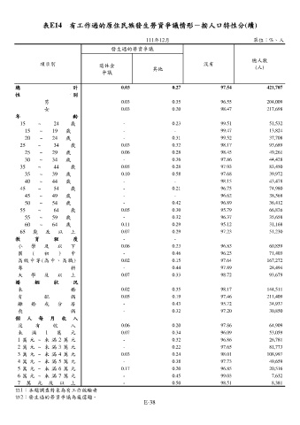 表E14 有工作過的原住民族發生勞資爭議情形-按人口特性分(續)