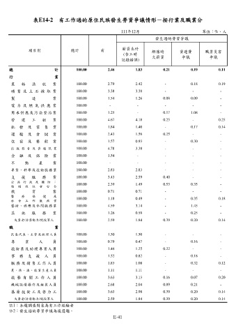 表E14-2 有工作過的原住民族發生勞資爭議情形-按行業及職業分