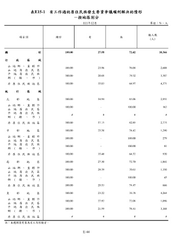 表E15-1 有工作過的原住民族發生勞資爭議順利解決的情形