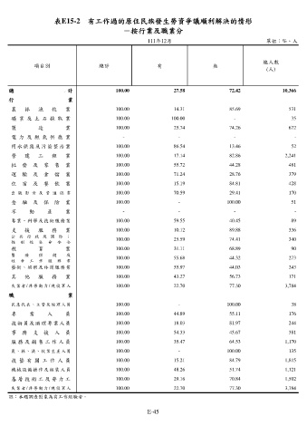表E15-2 有工作過的原住民族發生勞資爭議順利解決的情形