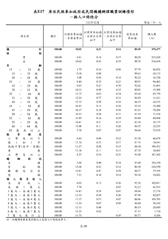 表E17 原住民族參加政府或民間機構辦理職業訓練情形
