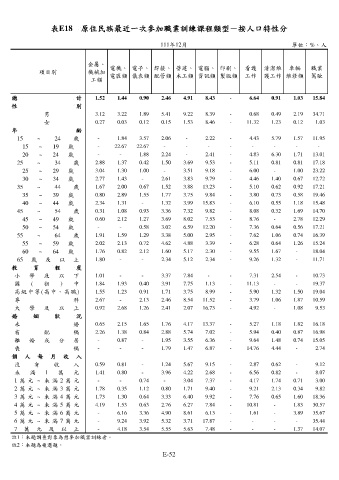 表E18 原住民族最近一次參加職業訓練課程類型-按人口特性分
