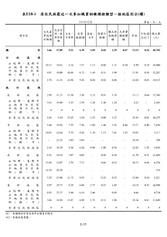 表E18-1 原住民族最近一次參加職業訓練課程類型-按地區別分(續)