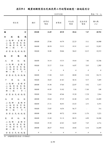表E19-1 職業訓練對原住民族找尋工作的幫助程度-按地區別分