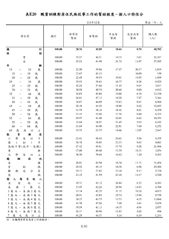 表E20 職業訓練對原住民族從事工作的幫助程度-按人口特性分
