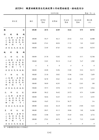 表E20-1 職業訓練對原住民族從事工作的幫助程度-按地區別分