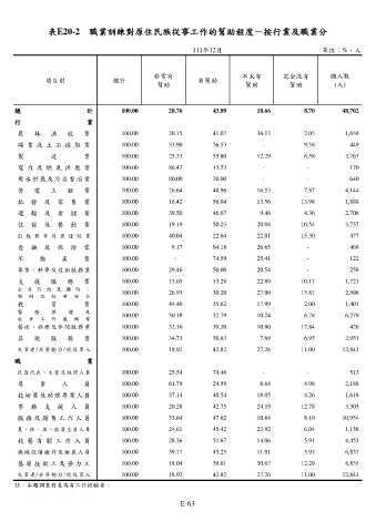 表E20-2 職業訓練對原住民族從事工作的幫助程度-按行業及職業分