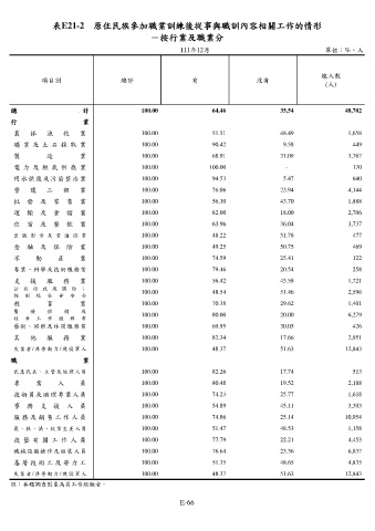 表E21-2 原住民族參加職業訓練後從事與職訓內容相關工作的情形